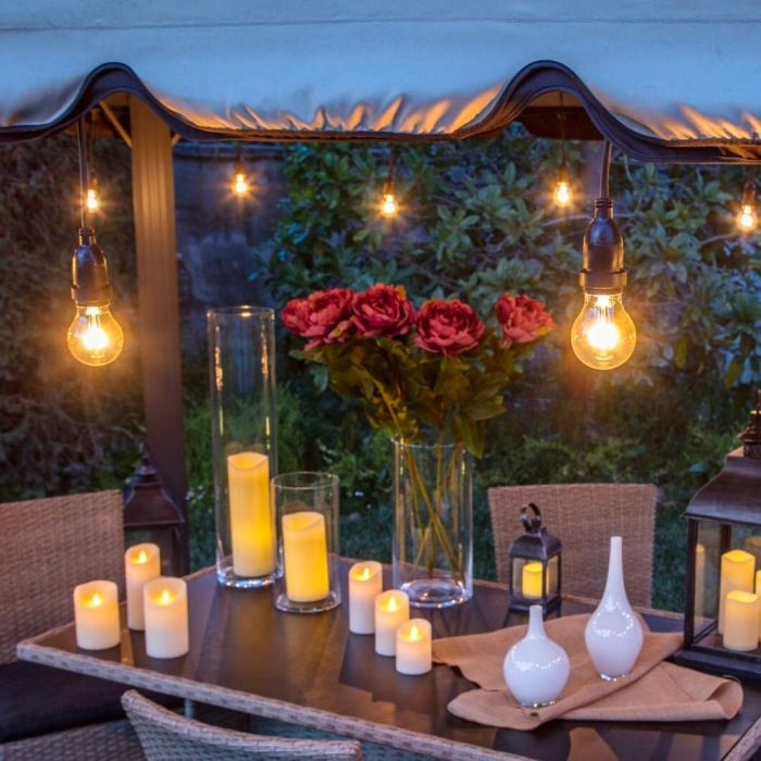 Si, tra le luci per esterno la catenaria di lampadine è di certo la soluzione più pratica ed al tempo stesso di grande effetto.