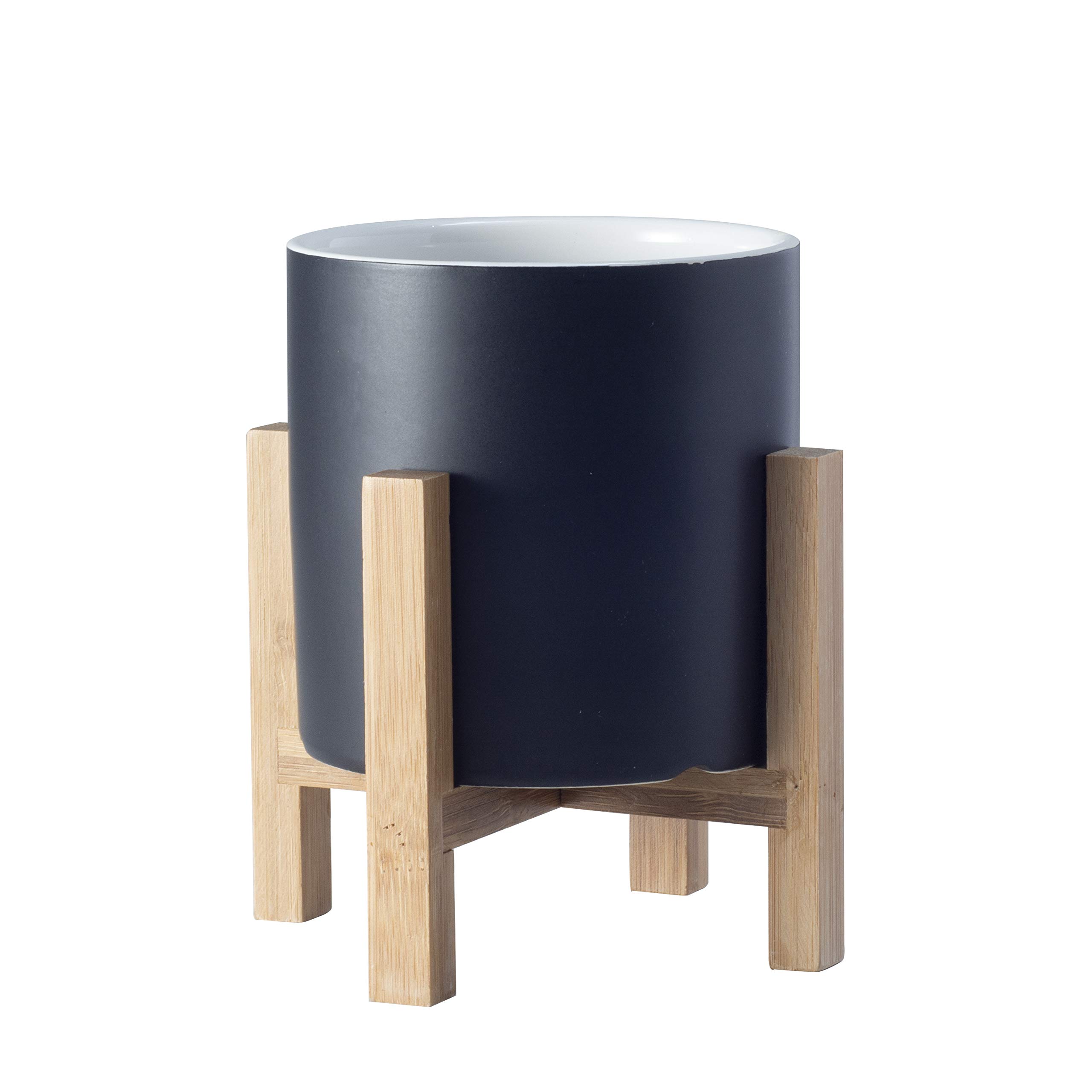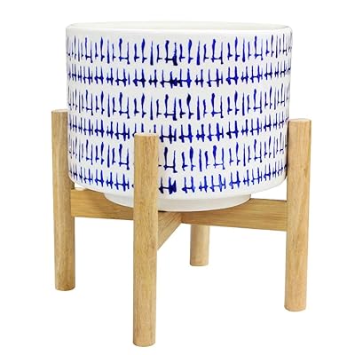 / Ceramic Plant Pot With Wooden Stand / Hfhome Set Of 2 Mid Century Modern Ceramic Plant Stand With 18cm 12cm Diameter Plant Pots Indoor Round White Standing Planters With Drainage And Plug Outdoor White Garden Cactus Planters Amazon Co Uk Garden : You never have to worry about those back problems with these sturdy and tall plant pots.