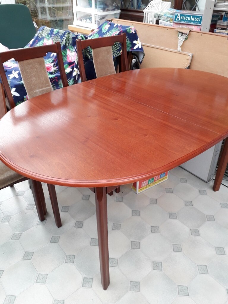 Especially if you only need to seat a small family for regular meal times, but need a bigger dining table for when you have. Simply retract when not in use. French provincial cherrywood dining table. Very easy to assemble, good and durable wood. Classic solid wooden dining table and 4 chairs set kitchen home.